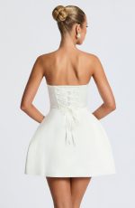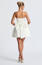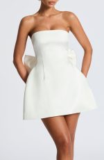 The Abbey Mini Dress in Blush is a playful take on a classic silhouette. Made from non-stretch structured satin, this dress features a strapless design and a lace-up back for a unique touch. The bubble-shaped skirt adds a playful flair, while the detachable bow on the back adds a touch of whimsy. Perfect for any special occasion.