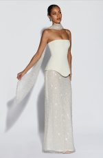 Elevate your wardrobe with the Allaire Maxi Skirt in Ivory. Featuring delicate embellished tulle and a semi-sheer finish, this maxi-length skirt offers a graceful, sophisticated silhouette perfect for special occasions.