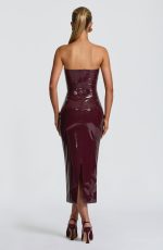 Elevate your look with the Amala Midi Dress in Cherry Lacquer. Crafted from high-shine vinyl, this body hugging dress features underwired cups and detachable straps for tailored support. Shaped princess seams and a centre back split enhance its contoured silhouette.