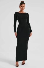 Feel sculpted and sexy in the Anastassia maxi, your new dress of dreams with long sleeves and a showstopping low back. Made from our signature double layered fabric, wear yours with loose waves and platform heels.
