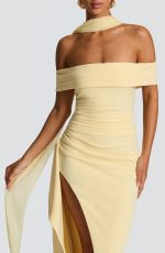 Elevate your ensemble with the Ayla Scarf in vibrant Lemon. Crafted from luxuriously soft stretch mesh, this versatile accessory drapes elegantly around the neck, adding a refined touch of colour and texture to any outfit.
