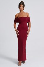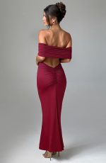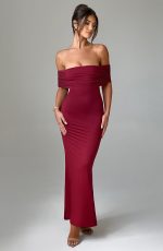 Whether it’s date night or girls night, capture all attention in the Belinda maxi dress. Made in super smooth, slinky fabric that moulds to your body, this double layered design features an off the shoulder, bardot neckline that’s gathered. It’s complete with an open low back with ruched detailing. Looks amazing paired with tonal heels and gold jewellery.Â