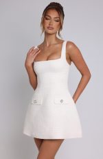 Step in, stand out, and show them how it’s done in the Bessie mini dress. A super chic look, it’s made from premium textured tweed fabric with a square neckline, adjustable straps and a bubble shape skirt for extra drama. Complete with pearl-adorned welt pockets, seam details to the body ensure a figure-hugging fit.