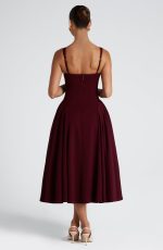 The Betty Midi Dress in Cherry Lacquer is a timeless statement piece, crafted from premium stretch crepe for a flawless fit. Designed with a chic square neckline and elegant fan-shaped straps, this dress offers a feminine and refined silhouette. The full midi-length skirt, enhanced with gathered godet panels, creates beautiful movement with every step.