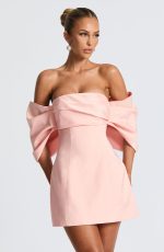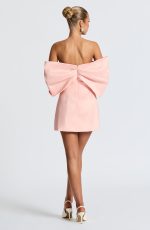 Introducing the Briella Mini Dress in a beautiful blush hue. This stunning dress features a sleek mini length and is made with smooth taffeta fabric for a luxurious feel. The Bardot neckline and asymmetric pleat detail on the bust add a touch of elegance, while the oversized pleated sleeves and A-line skirt create a flattering silhouette. Elevate your look with this exclusive piece.