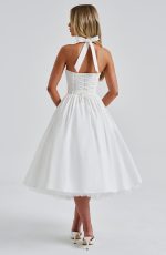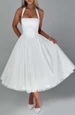 Cressida is elegant yet playful, boasting a flattering square halter neckline and princess seams to give a super flattering, snatched silhouette. The body is complemented by a full skirt with peek-a-boo tulle for added drama. The look is complete with tie back fastening and lace up back for your perfect fit.