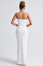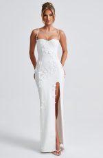 Meet Dalary… You asked, we delivered!! We promise you aren’t dreaming! This one-of-a-kind dress is soft girl perfection, made in a delicate sheer mesh with individually hand stitched playful flower appliques scattered over the body. With a cupped bust to frame your chest and a thigh high split, this dress moulds to the contours of your body for that second skin fit.