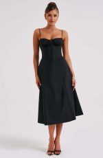 The dreamy Deanna dress is ultra feminine, made in our premium woven cotton blend fabric that feels as good as it looks. With a corseted bodice to cinch the waist, the bust is gathered with a drawstring tie for a super pretty finish. The midi skirt is complete with a thigh high split for a little bit of sexiness. Style it up with an effortless knot and heeled mules.