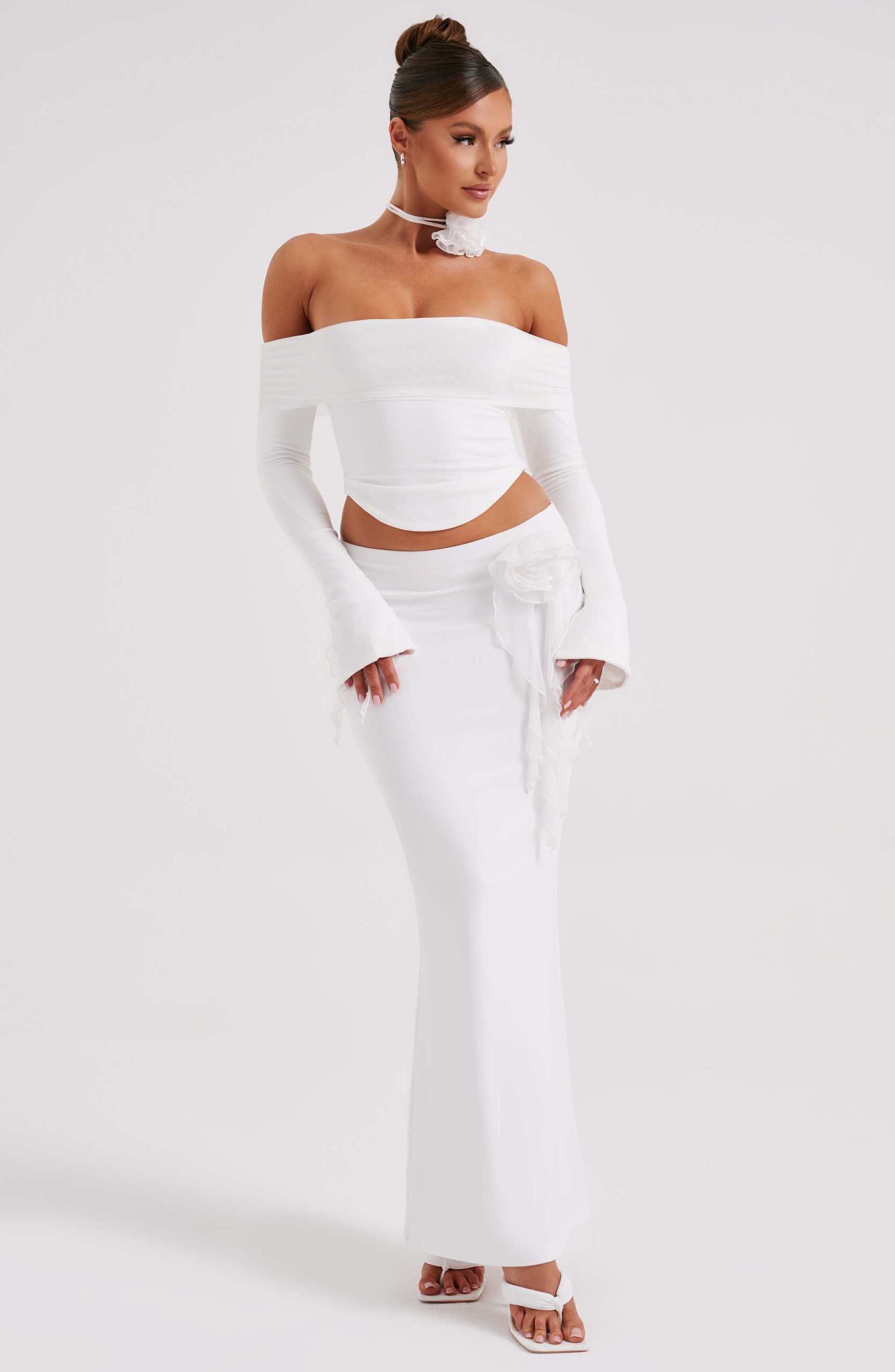 Deema is the set on everyone’s mind. With a super sculpted, figure-hugging fit, this maxi design is made from our premium double layered mesh with a gently flared hem, high waisted fit and ruffle flower corsage detail. Pair with the Deema skirt for a match made in heaven.