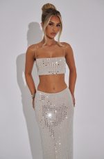 Indulge in luxury with the Dimity Top in black. This premium piece features a stretch mesh fabric that is fully lined, exquisitely detailed with large square hotfix rhinestones, and finished with delicate spaghetti straps and a classic straight neckline. Wear with the Dimity skirt and shine all night.