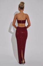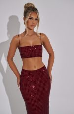 Unleash your sophistication in our Dimity Top – Wine. Crafted from premium stretch mesh and adorned with large square hotfix rhinestones, this top exudes luxury. Fully lined with elasticated spaghetti straps and a straight neckline, it’s the perfect addition to your evening wardrobe. Wear with the Dimity skirt and shine all night.