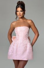 THE dress of the season has landed and you’re going to be obsessed. Meet Elenora, our dreamy mini with a pretty structured skirt and waist cinching bodice. This strapless style is complete with lace up and an oversized bow to the back for perfect feminine drama.