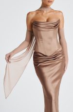 The Eli Gloves in Hazel are the perfect finishing touch for an elegant look. Crafted from soft stretch mesh, these elbow-length gloves add a refined, modern touch. Pair them with the Helen Maxi Dress for effortless sophistication or complete the look with the Helen Maxi Dress or the Ayla ScarfCallista Corset and Bernadette Maxi Skirt.