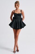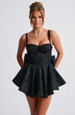 Give us all the pretty playsuits this season! Emelie is made from a premium jacquard fabric with an all-over floral design, cinching at the waist and flaring gently at the skirt which has in-built shorts. With an underwired, balconette bust and lace trim detail, the look is complete with a dramatic oversized bow at the back which you can remove.