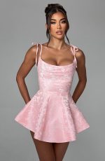 Pretty playsuits are everything this season. A design featuring in-built shorts with a panelled, flared skirt over, Emmie is made from a heavyweight jacquard fabric with all-over floral print. The look is complete with a cowl neckline, tie straps and lace up back. Style yours with platforms and effortless waves.