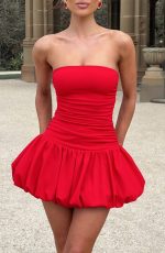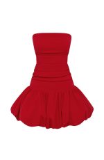 Let us upgrade your new season line up with this cute mini. Made in stretch crepe with a body-hugging fit, it feature a strapless neckline, dropped waist and flirty gathered puffball skirt. Style with strappy heels for your next dinner reservation.