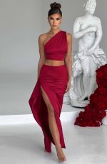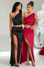 Embrace your elegance in the Halsey maxi skirt, cut from our luxury satin fabric that drapes beautifully over the body. With a thigh high split and pretty drape detail to one side, pair yours with the Halsey crop top for the next big date in your diary.
