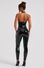 You NEED this bodysuit, boo. Cut from our premium high shine, stretch vinyl that’s fully lined for a smooth, comfortable feel, this plunge neck design has a high leg design, thong back and a halterneck strap. Style yours with the high waisted Arianna pants, high platforms and a sleek bun.