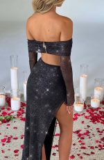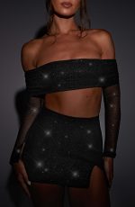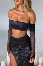 Prepare to mesmerise in the Jana crop top, an off shoulder style with long sheer sleeves. Made in our signature sparkle mesh with all-over sparkle detail, pair with the Jana maxi and sparkle all night long.