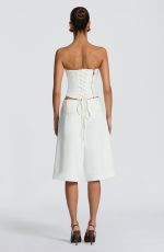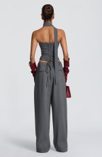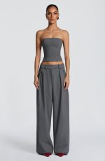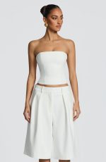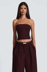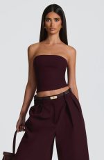 This sophisticated Kerry Top in black features a strapless design crafted from non-stretch woven suiting fabric. The elegant lace-up back adds a refined touch, ensuring a tailored fit for a polished look.
