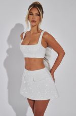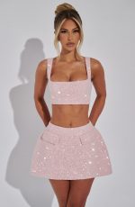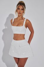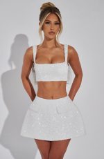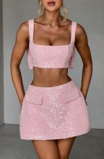Both classy and glam in equal measures, you’ll be obsessed with the Kiri mini skirt. Crafted in our luxe sequin tweed fabric, it features a mid rise fit with fun bubble shaped skirt and faux flap pockets to the front. Make it a match with the Kira mini skirt.