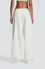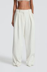 The Kirsty Pants in Ivory feature a mid-rise, wide-leg design crafted from non-stretch woven suiting fabric. With a fly zip closure, double pleats, and twin welt back pockets, these pants embody timeless sophistication.