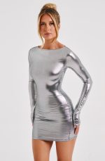 Our metallic mini dress oozes glamour, made from a luxe semi sheer jersey that moulds to your body figure for the dreamiest fit. The dress has long sleeves, flattering high neckline and looks amazing worn over the Macy bralette and bottoms.