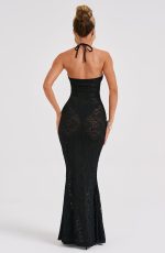 Ready for a dose of dark romance? Meet Leilina, a seductive maxi crafted in our premium stretch floral lace that moulds to your figure giving you the silhouette of dreams. With a plunge neckline and underwired cups, the design is semi sheer and looks amazing paired with sleek hair and heels.