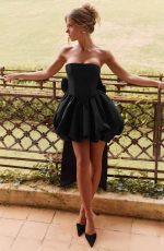 Steal the show in our Lotus mini dress. Crafted from premium textured taffeta fabric, this mini has been designed for maximum drama. This strapless masterpiece features a bold puff-ball skirt with delicate gathering at the waist, creating a voluminous and eye-catching silhouette. The V-shaped waist seam, boned bodice and lace up back ensure a sculpted, flattering fit. Lotus is complete with detachable bow with long, sweeping tails adding a statement-making touch that can be removed to switch up your look.