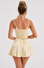 Part of a dreamy set you’ll want to wear on repeat, the Louisa top is crafted in our luxury stretch satin with a stunning sheen. This plunge design hugs your body and can be tightened with lace up detail at the back to really cinch your waist. Pair with the Louisa skirt and a playful flower neck corsage.