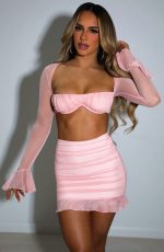 Maisie is our go-to skirt this season, she’s is fun, flirty and made in our favourite blush tone. Cut from premium power mesh with lots of stretch, the design is ruched and double lined to mould around your curves. Maisie sits high on the waist and is complete with a sheer frill to the hem. Match with the Maisie crop top, sleek hair and tonal heels.