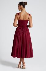 The Natassia Midi Dress in Berry is a romantic statement piece that’s designed to flatter with its beautiful structure and feminine details. Featuring boning in the bodice for a sculpted silhouette, a lace-up back for a perfectly snatched fit, and a flowing knife-pleated skirt, this dress moves beautifully with every step.