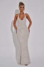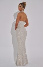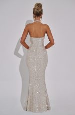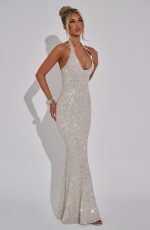 Get ready to light up the room in our Odette Maxi Dress in Champagne. The luxurious textured sequin fabric and fully lined design will have you feeling like a star. With a flattering plunge scoop neckline and body hugging fit, you’ll turn heads all night long. The mermaid skirt adds a touch of elegance and the invisible zipper ensures a perfect fit.