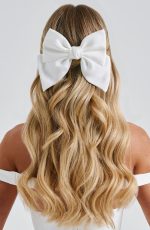 Add a playful finishing touch to all of your looks with the Perrie hair bow clip. Made in soft satin fabric with a barrette clip to secure into your hair, this accessory will look dreamy matched with bow-adorned styles including Elenora, Emilie, Whitney and more.