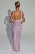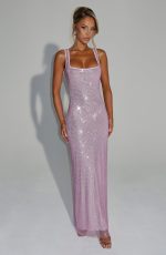 Indulge in luxury with the Petra Maxi Dress in Pink. Made from stretch net fabric embellished with square hotfix and rhinestones, this dress hugs your body for a flattering silhouette. The square neckline and low scoop back add a touch of sophistication. Lined with mesh for a semi-sheer look.