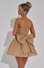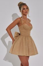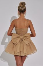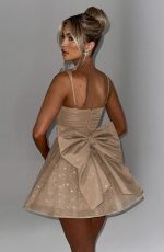 The Polly Mini Dress is perfect for a night out with sparkle stretch mesh fabric and ruched details for added texture. The fully lined underwired cups provide support while the detachable bow detail adds a touch of playfulness. With a full skirt and invisible zipper fastening, this dress is sure to turn heads.