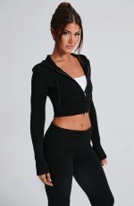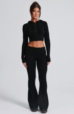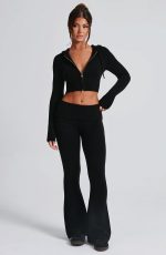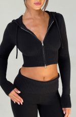 Elevate your off duty wardrobe with the Portia Knit Hoodie. This cropped hoodie features a fitted silhouette with a 2-way zipper and drawstring for the perfect fit. Complete your look with the matching Portia knit Pants.