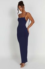 Ooze femininity in the stunning Sanya dress, a floor sweeping maxi made in our signature slinky fabric that’s double layered to give an ultra cinching effect from within. With a super low back and flattering ruched detailing to the v-shape over the bottom, the long straps are complete with a tie fastening. Style yours with gold bangles and sleek hair.