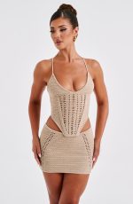 The perfect top for your next summer soiree, Selma is made in our premium crochet knit with boning in the bodice for a snatched fit. The design is complete with triangle shaped cups, eyelet detail to front and showstopping open back that laces up. Partner with the matching Selma skirt and beachy waves.