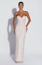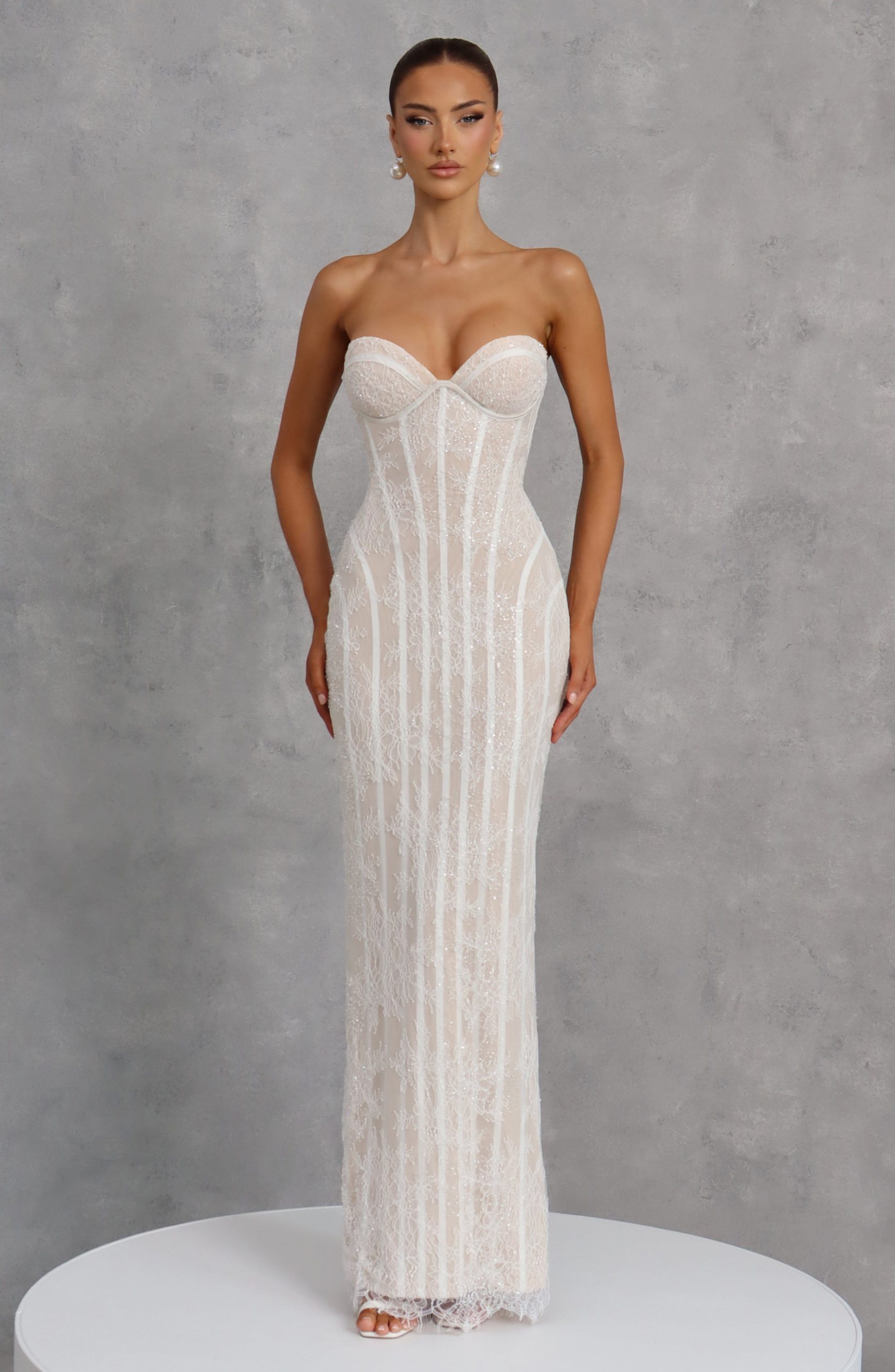 The SIAN Maxi dress is bridal dressing at its most radiant. Crafted in intricate floral lace with a contrast mesh lining, finished with fine beads and sequins throughout – catching the light with every movement.
