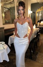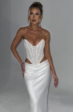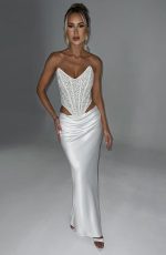 Oh she’s luxury! Guaranteed to make you center of attention, the Sierra corset is cut from our stunning custom bead and sequin tulle fabric, fully lined in mesh. This one-of-a-kind piece is super sparkly, with waist-cinching boning in the corset bodice and binding detail throughout the body. With an elegant dipped hem and strapless neckline, pair her with the Bernadette maxi for an angelic look.