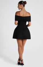 The Solana Mini Dress in Black is a timeless statement piece designed to turn heads. Made from non-stretch crepe, this dress features a pleated bardot sweetheart neckline that exudes effortless elegance, highlighting the décolletage with a romantic touch. The bubble-shaped skirt adds volume and drama, creating a bold yet feminine silhouette.