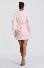 The Susie Mini Dress in Blush is crafted from, non-stretch woven suiting, this single-breasted blazer dress features a structured long-sleeve silhouette secured with multi hook-and-eye detailing down the centre. The pleated cowl mini skirt adds movement, while an adjustable waist strap delivers a refined fit.