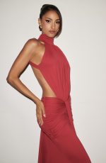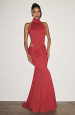 Thekla Maxi Dress in luxurious stretch slinky jersey. High gathered neckline, ruched bodice, and daring side cutouts frame the waist beautifully. Deep open back and flowing mermaid silhouette with dramatic centre train deliver pure sophistication for evening wear.