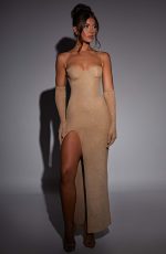 Elevated and eye-catching, more is more in the Trixie maxi dress. Cut from our special custom mesh with all-over sparkle detail, the fit skims over your figure, contouring the waist and body. The look is complete with underwired cups and a thigh high split. Dress it up with gloves, glam hair and your highest heels.