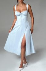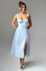 Must-have milkmaid midis are what we’re wearing ALL season with sleek waves and mule heels. Ulrika has underwired cups, fan shape straps and a boned corset for a snatched waist. With a lace up back to make this extra figure flattering, it’s complemented with a full skirt and thigh high split.