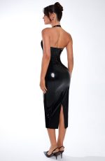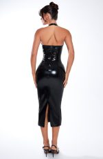 Look drop dead gorgeous in Violette, a sexy, high shine midi cut from premium vinyl with a slight stretch for your comfort. With a plunge halter neckline, this dress hugs your curves for the silhouette of dreams.