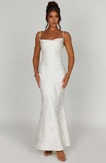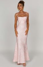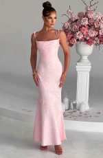 With pretty florals and a sexy, body hugging fit, Whitney exudes Romance. Made in our floral jacquard fabric with a bias cut to give a stunning drape to the skirt, the dress skims over your body for your most flattering fit yet. Complete with tie straps and a sexy cowl neck, wear yours with sleek waves, a mini clutch and platform heels.