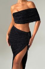 Crafted in our flattering textured stretch fabric, the Zina top features an asymmetric strap and off the shoulder styling. Make it a match and style with the Zina midi skirt.