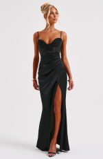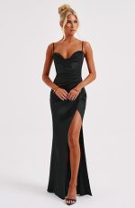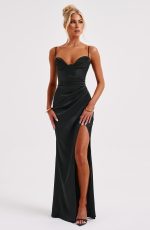 Feel like the goddess you are in Zola, a maxi dress with plunge neckline and underwired cups to frame your bust. With a sleek, sexy silhouette, Zola is made from a heavyweight stretch satin that moulds to your body figure and snatches your waist. The design is complete with a split skirt.